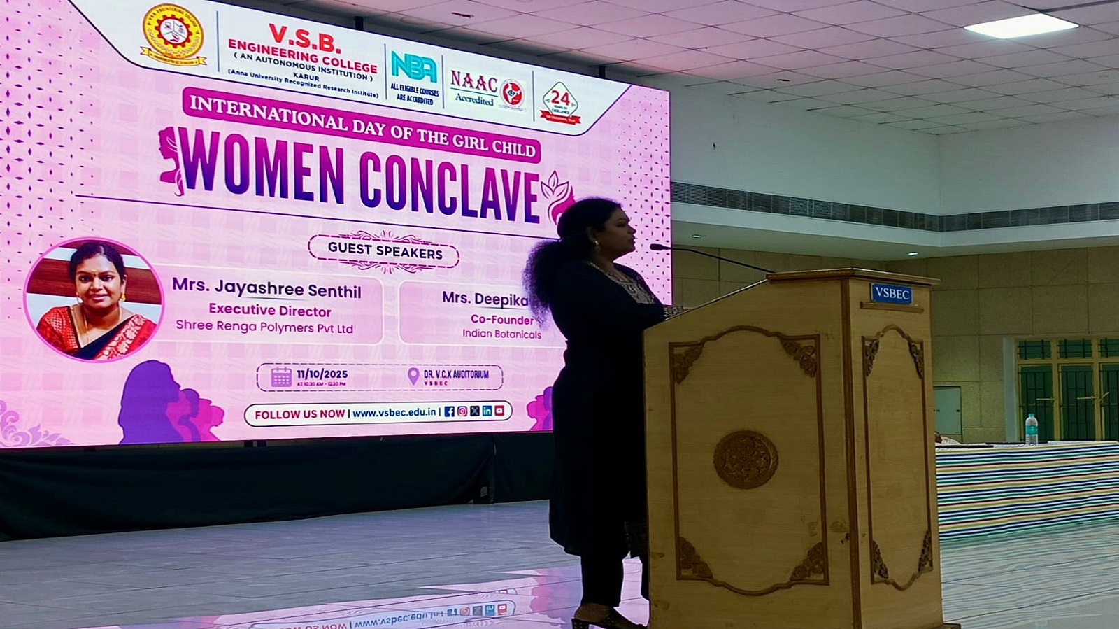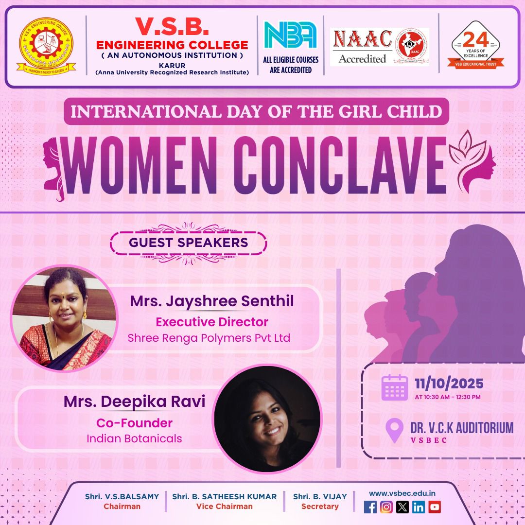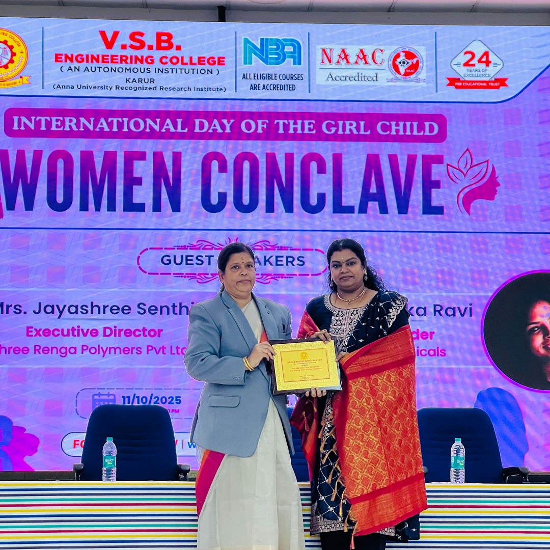 It was an absolute honour to be invited as a Guest Speaker for the Women Conclave organised by V.S.B. Engineering College, Karur, on the occasion of International Day of the Girl Child (11th October 2025).
