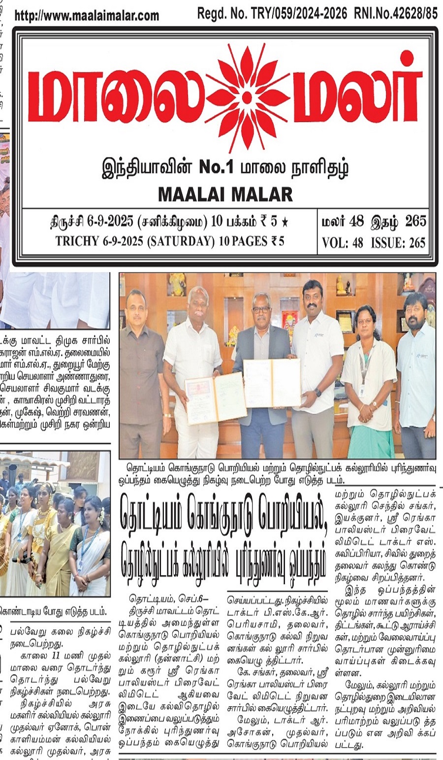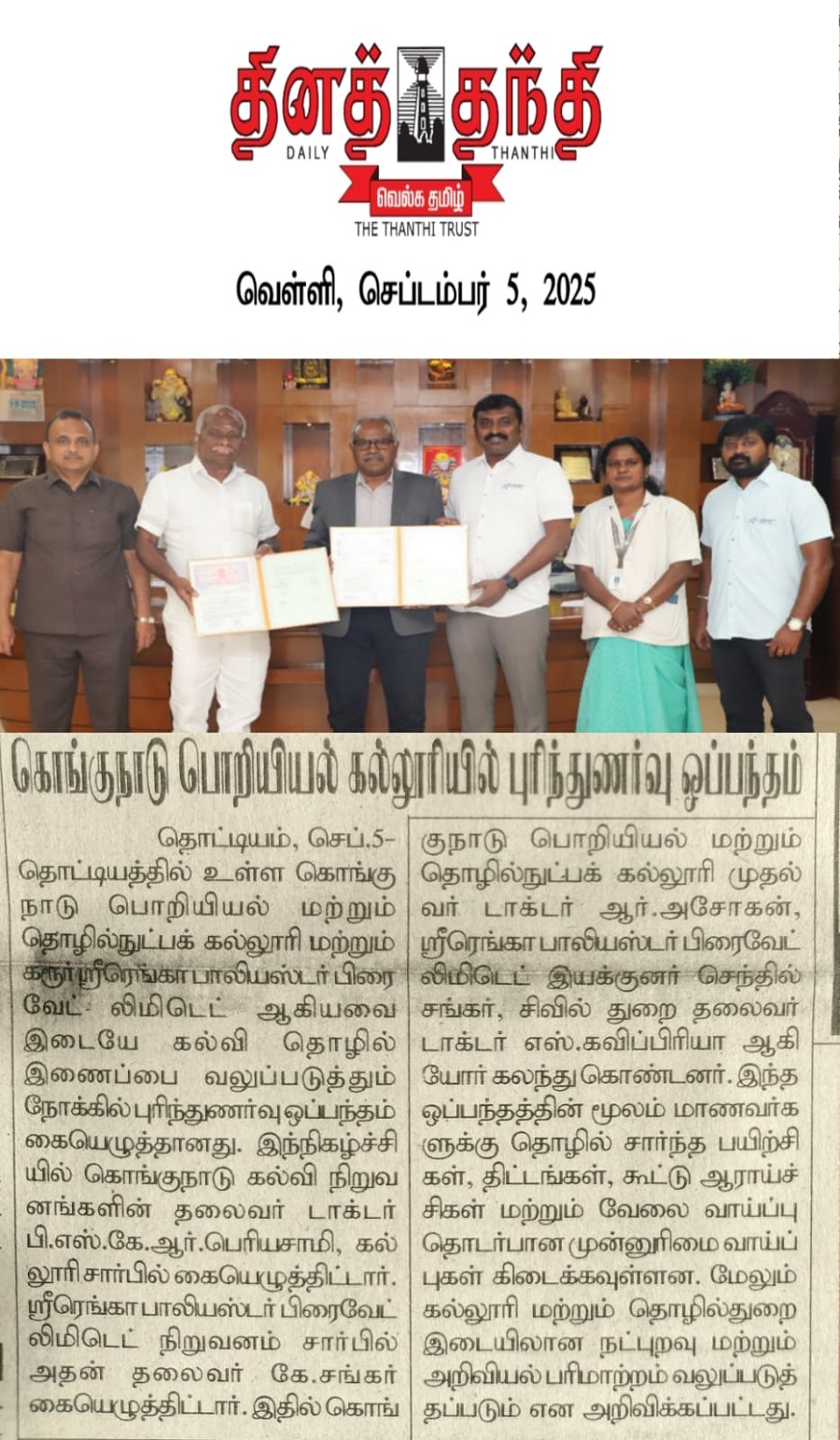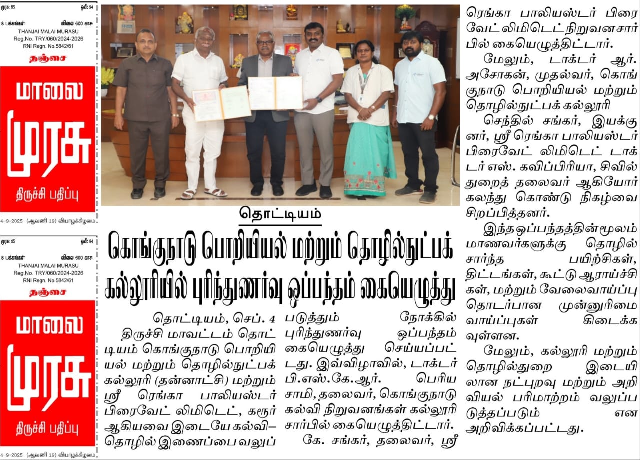 MoU sing SRP & Kongunadu College of Engineering Technology