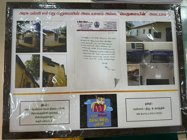 At Sri Ranga Polymers, we strongly believe that quality education starts with quality infrastructure. As part of our CSR commitment and with the support of fellow entrepreneurs from Karur, we took up the complete demolition and refurbishment of the Government Higher Secondary School at Aravakurichi, located in the rural heart of Karur district.